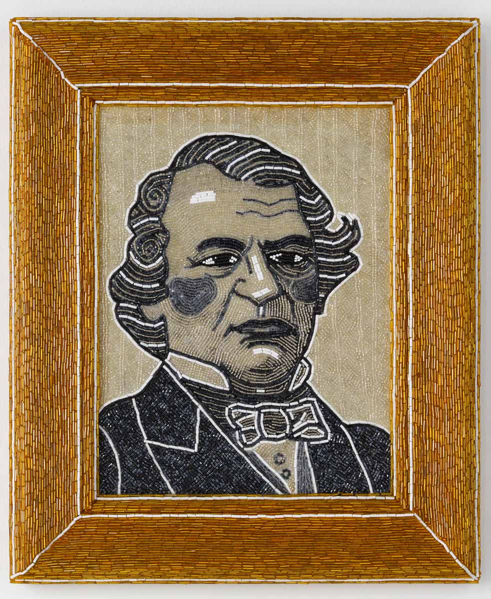 Andrew Johnson, 2000, Glass beads, wood, 17 x 14 x 1.5 in. (43.5 x 36.5 x 4 cm)