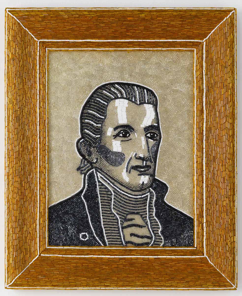 James Monroe, 2000, Glass beads, wood, 17 x 14 x 1.5 in. (43.5 x 36.5 x 4 cm)