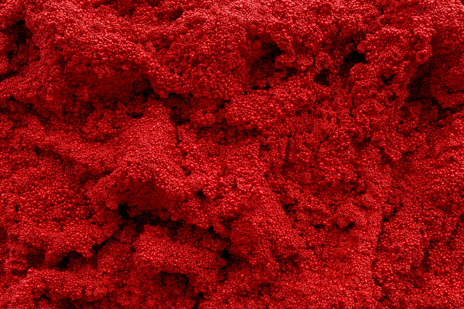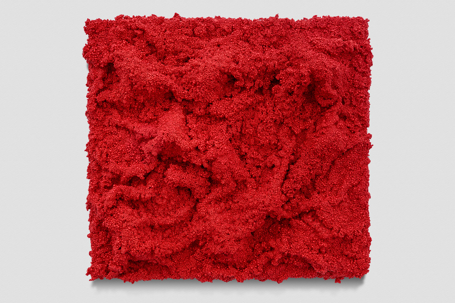 Pyroclastic, 2018, glass beads, thread and epoxy resin on stainless steel; 30 x 32 x 7.5 in. (75.2 x 81.3 x 19.1 cm)