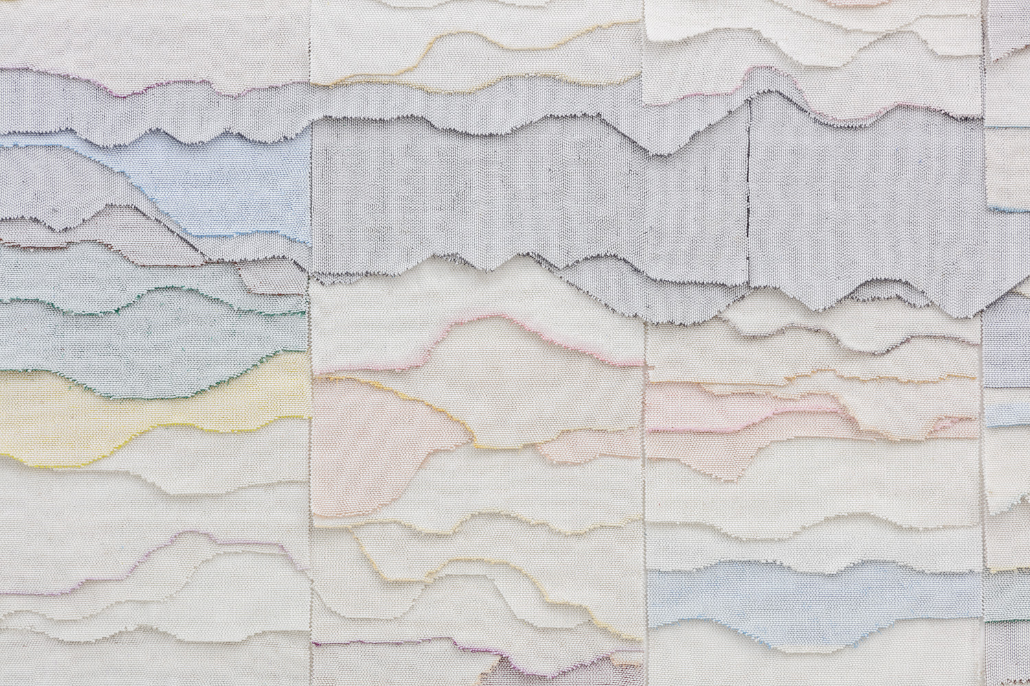 Desire Lines, 2019, oil paint on woven glass beads and thread