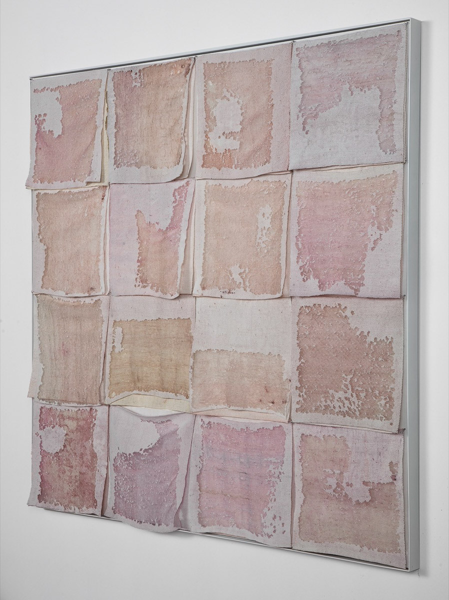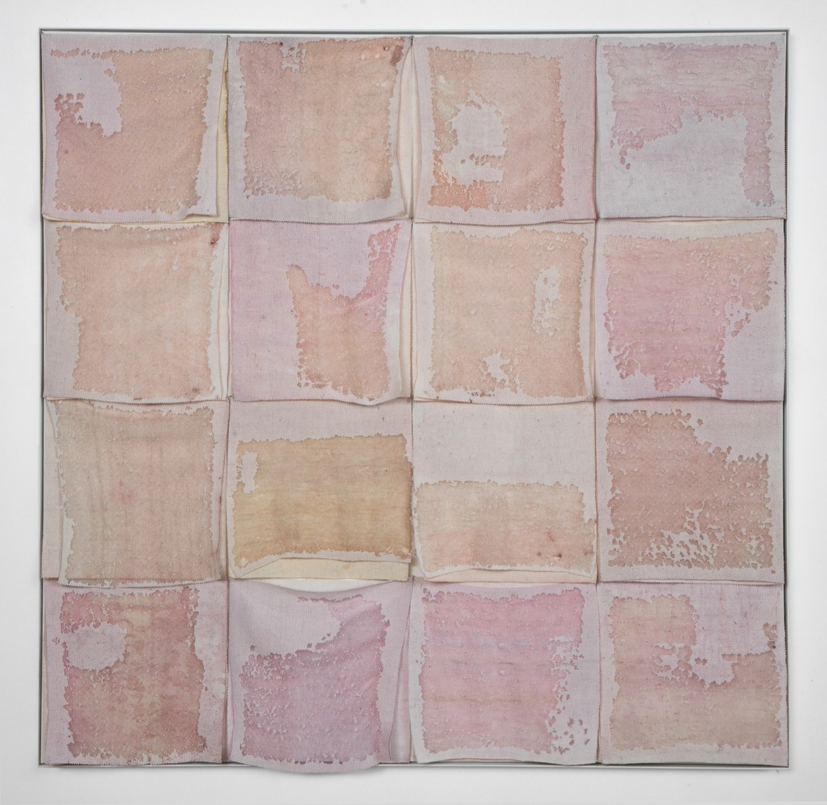 Heart Meat, 2022, acrylic paint on glass beads, 56 x 55.5 x 2 inches (142.24 x 140.97 x 5.08 cm)