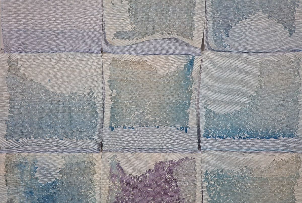 Lost Blue, 2022, acrylic paint on glass beads, 42 x 42 inches (106.7 x 106.7 cm)