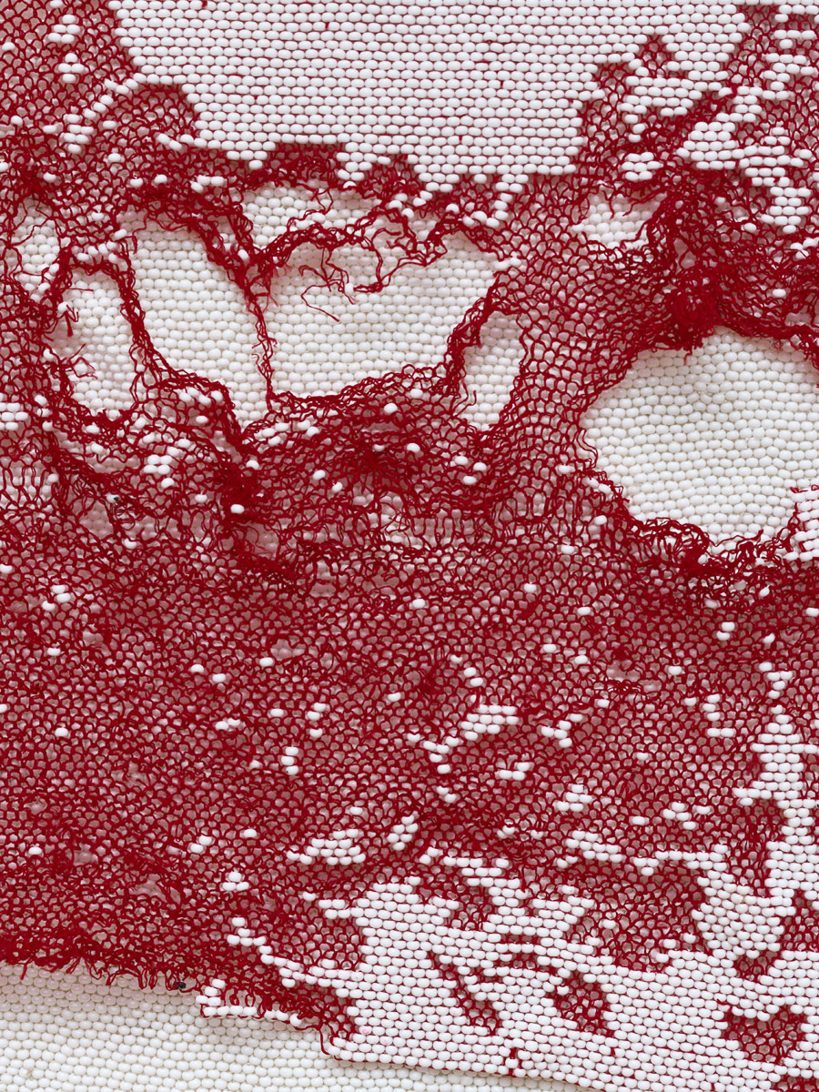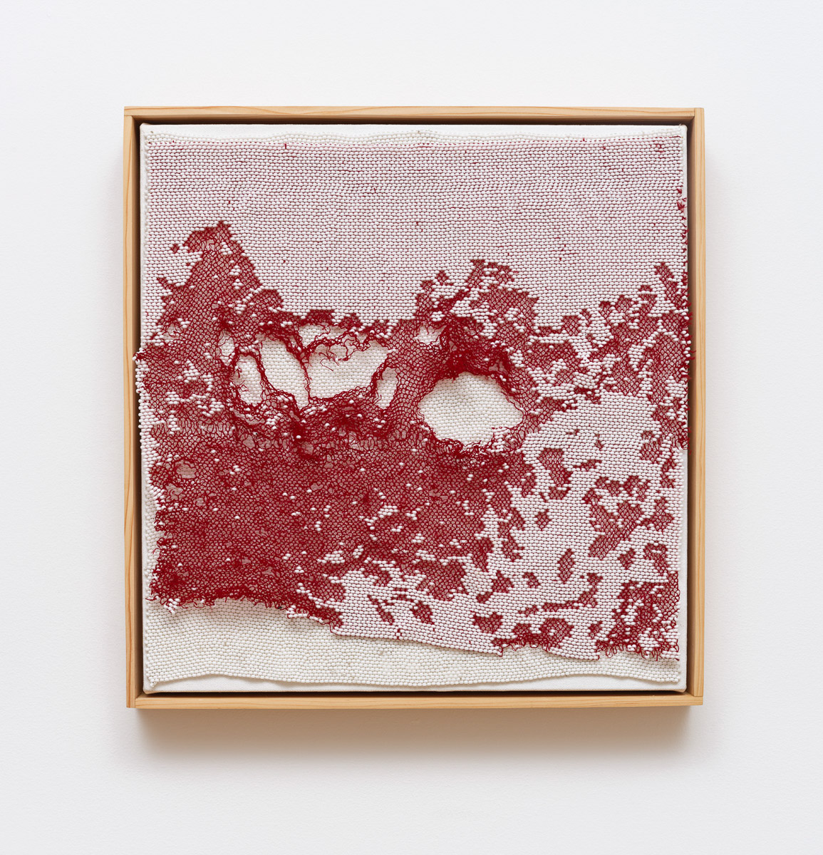 syllabus, 2018, woven glass beads mounted on stretcher frame, 15.5 x 14.875 x 2 inches (39.37 x 37.78 x 5.08 cm)